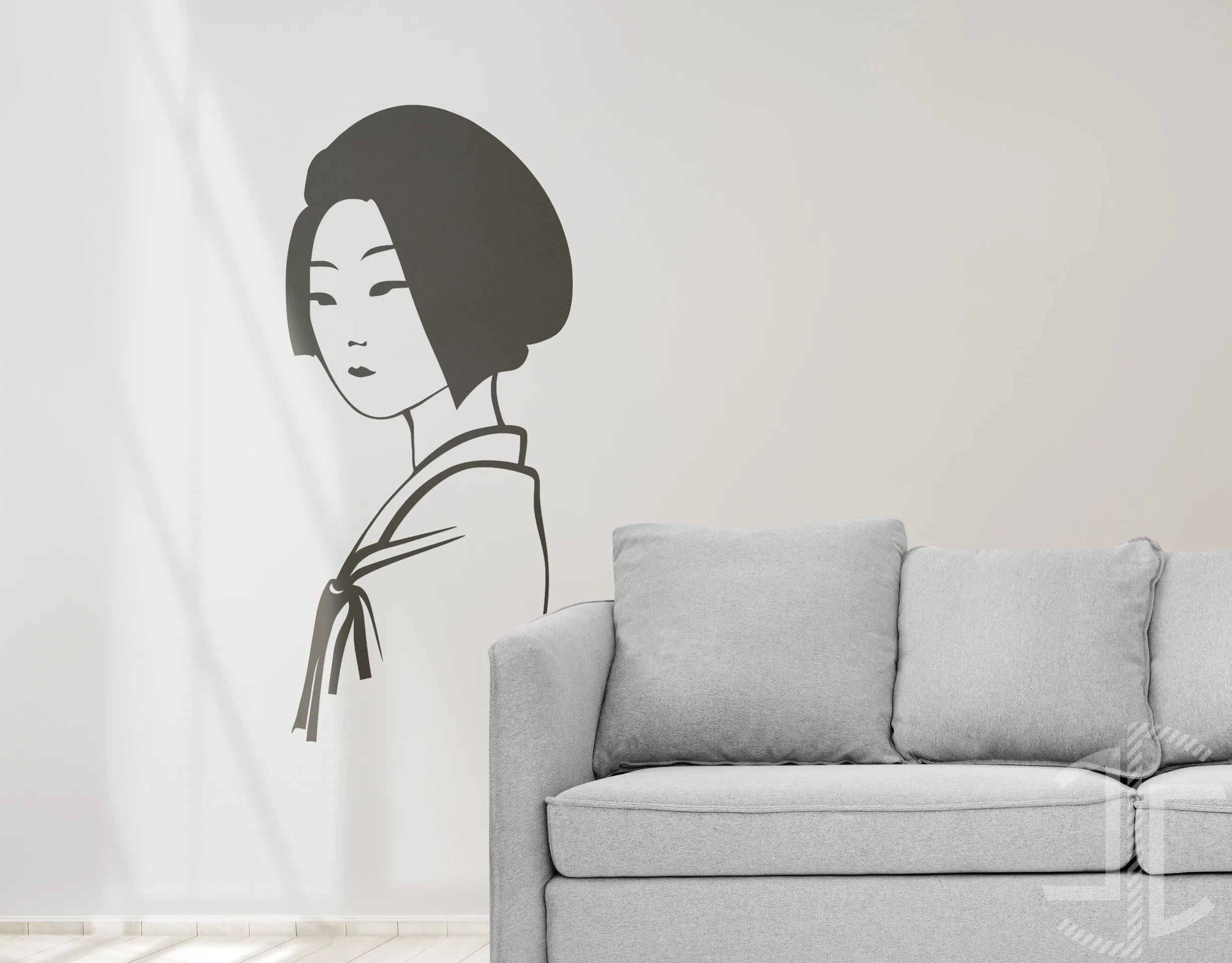 O design opta por uma abordagem minimalista, reduzindo a complexidade visual a linhas puras e formas essenciais. A silhueta mostra o penteado tradicional elaborado e o kimono com o característico obi (faixa), elementos que imediatamente evocam a estética japonesa sem necessidade de pormenores excessivos. Esta simplicidade confere ao decalque uma versatilidade notável, permitindo que se integre tanto em ambientes contemporâneos como em espaços com influências asiáticas.