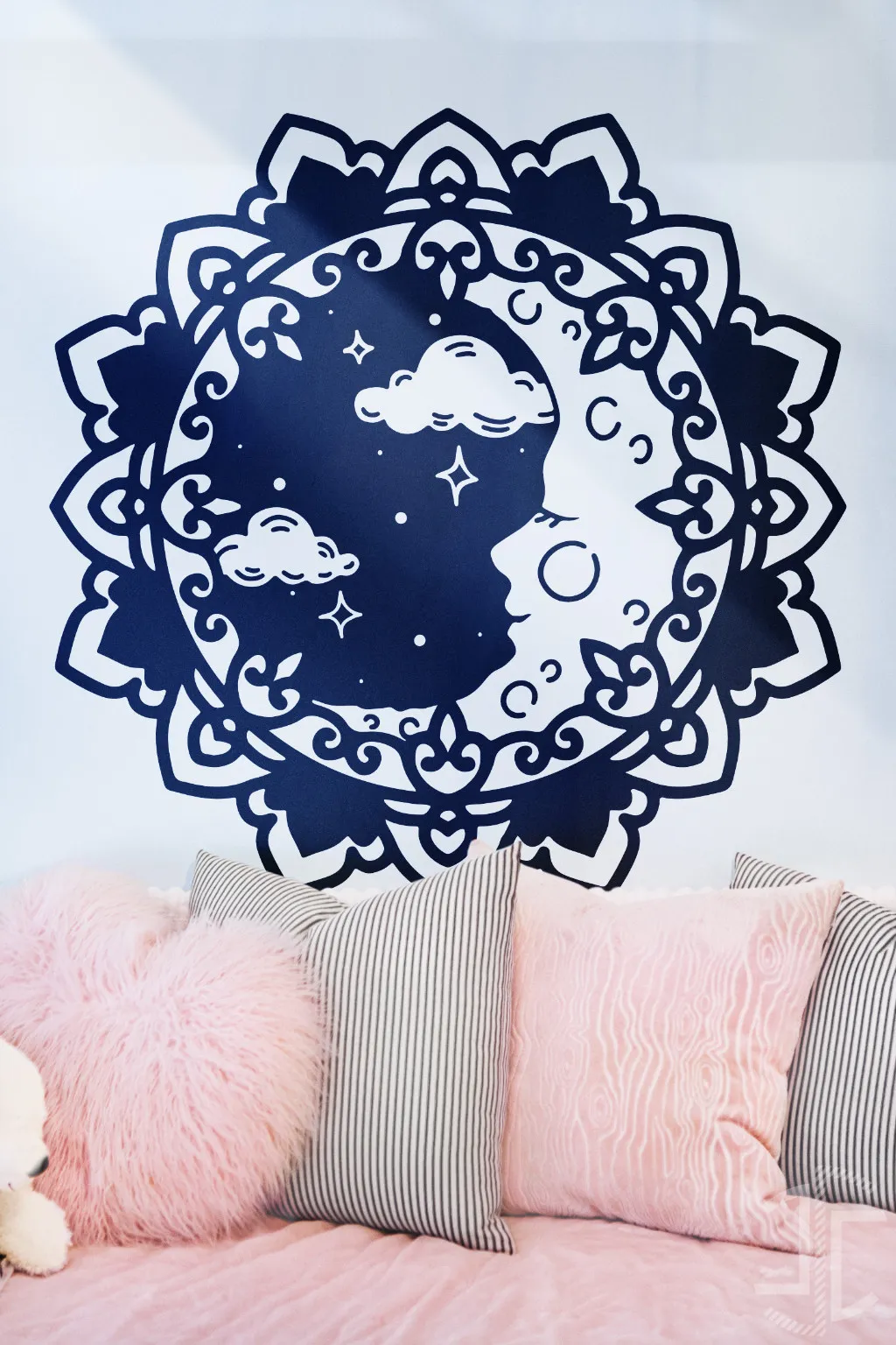 A Mandala com Lua e Estrelas - Autocolante em Vinil