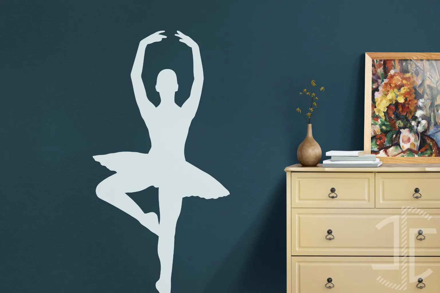 Ah, a bailarina. Parece que não nos cansamos dela, não é? Cá está ela, a "terceira versão" – ou, como os produtores de Hollywood diriam, a "Bailarina 3.0: O Regresso da Silhueta Elegante". Desta vez, a premissa é clara: menos é, decididamente, mais. O que temos perante nós é uma silhueta pura, em vinil, que se destaca com uma calma impressionante contra um fundo azul-petróleo de dar gosto. Não há pormenores desnecessários; apenas a forma essencial de uma artista em plena performance, capturada num instante de graça.