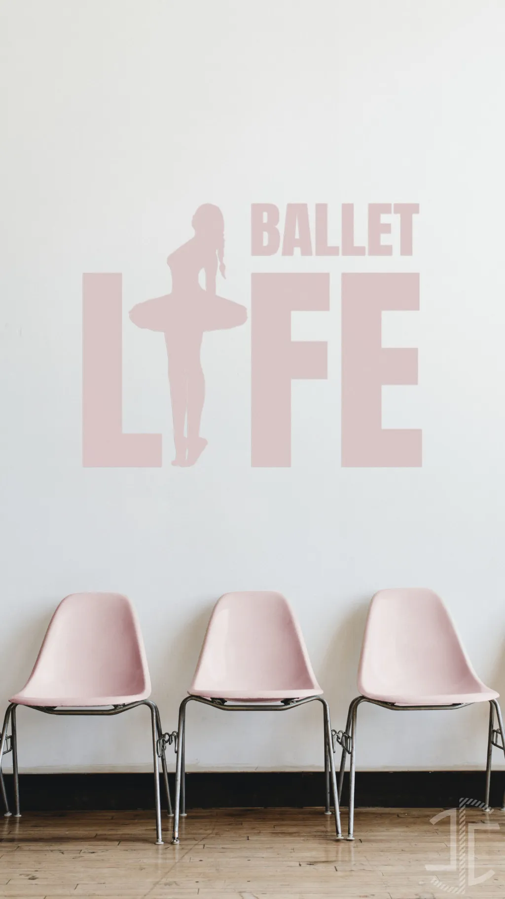 No lugar da letra “I”, a silhueta de uma bailarina en pointe emerge como o pilar central da palavra e da vida que ela representa. A sua pose clássica, com o tutu a definir uma linha horizontal de pura leveza, contrasta diretamente com a verticalidade e a gravidade da tipografia. É o resultado estético a florescer do processo rigoroso. A paleta cromática, que pode ser um rosa-pastel suave e contemporâneo como nas imagens (mas que por defeito é em preto ou branco), funciona como mediadora desta tensão e calma sobre uma mensagem que, no fundo, fala de uma dedicação absoluta e de um esforço monumental. O design não se limita a celebrar o ballet; revela a sua verdade complexa.