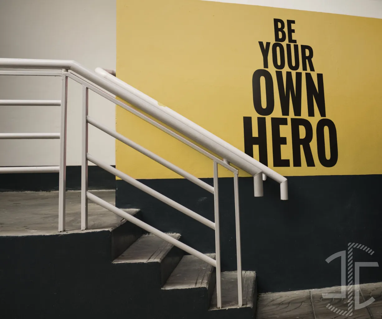 A escolha de uma tipografia tão marcada reforça a seriedade e a importância do conceito. Não se trata de uma sugestão gentil, mas de uma exortação para a ação e para a tomada de responsabilidade pessoal. Numa cultura que frequentemente celebra ídolos externos e figuras de salvação, esta peça reorienta o foco para o indivíduo, desafiando a noção de que a heroísmo é um atributo exclusivo de figuras míticas ou super-humanas. É uma chamada para o reconhecimento da própria força e capacidade de superação.
