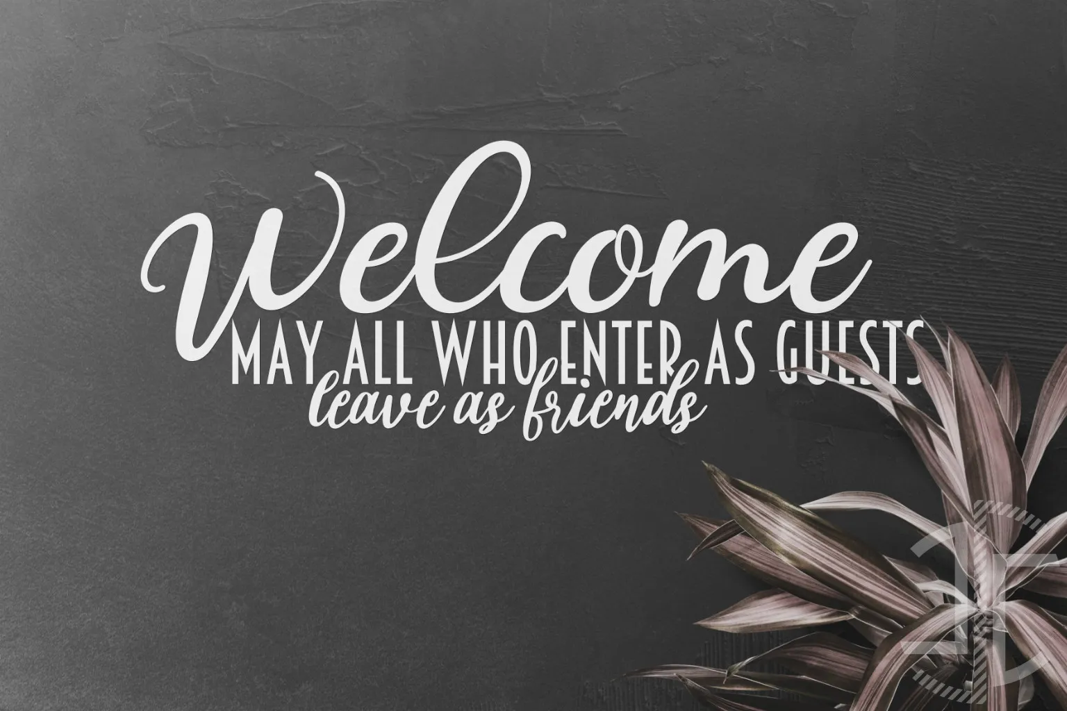 A arte da tipografia em vinil para decoração de interiores oferece não apenas um elemento estético, mas também a possibilidade de transmitir mensagens com profundidade e subtileza. Este design, disponível em inglês e português, com a frase "Welcome, may all who enter as guests leave as friends" e a sua contraparte em português, "Bem-Vindos, que todos os que entram como convidados saiam como amigos", é um exemplo notável dessa capacidade. A escolha de uma caligrafia fluida e elegante, que conjuga a informalidade de um convite sincero com a sofisticação de uma estrutura cuidadosamente elaborada, convida à reflexão sobre a natureza das relações humanas.