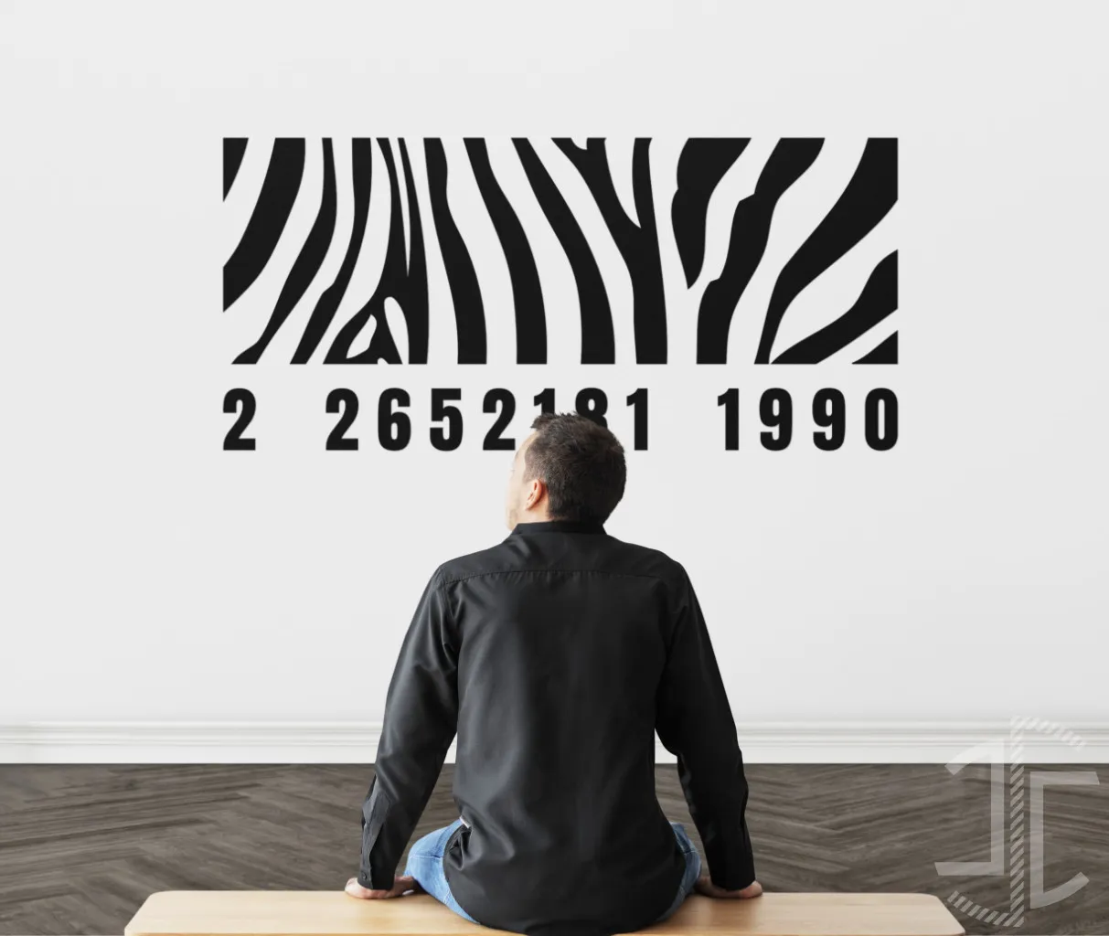 Olha-se para esta design e não se vê uma imagem, vê-se um diagnóstico. É um comentário visual, afiado e desconcertantemente preciso, sobre a condição humana na era do consumo. A fusão é de uma simplicidade genial e, por isso mesmo, brutal: o código de barras, esse ADN do comércio global, o símbolo máximo da padronização e da mercantilização, tem as suas linhas retilíneas e impessoais substituídas pelo padrão orgânico e único das riscas de uma zebra. De um lado, a natureza na sua expressão de individualidade — pois não existem duas zebras com o mesmo padrão. Do outro, o sistema na sua máxima expressão de homogeneidade. O que esta imagem nos mostra, sem necessidade de uma única palavra de legenda, é a forma como a sociedade contemporânea tenta enquadrar, catalogar e precificar o que é, por natureza, livre e indomável.