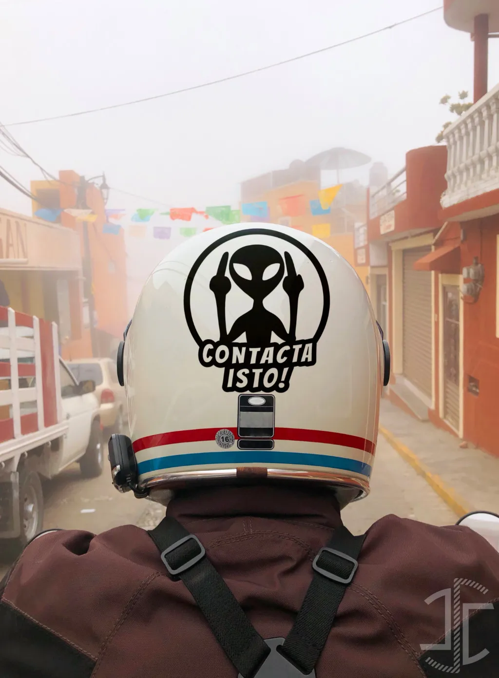 Este autocolante é ideal para motards com um sentido de humor negro, condutores de tuk-tuks cansados do ruído da cidade ou, quem sabe, para o próprio Musk colar num dos seus foguetões espaciais. Uma declaração de princípios para quem prefere a solidão do cosmos ao caos da comunicação humana...
