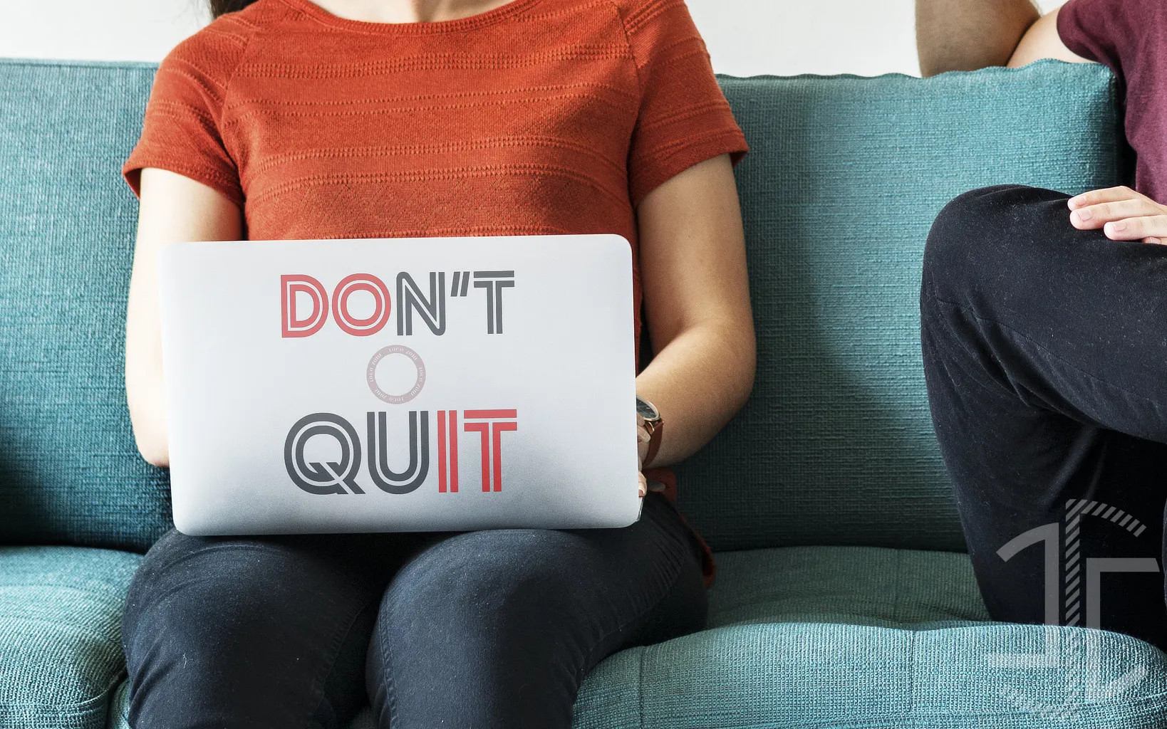 Este autocolante motivacional foi desenhado originalmente para portáteis, mas é perfeitamente aplicável em qualquer superfície lisa. A composição joga com a ambiguidade visual da frase “DON’T QUIT”, permitindo que se leia também “DO IT” por uma manipulação de cores — uma dupla mensagem que transforma a negação numa afirmação.
