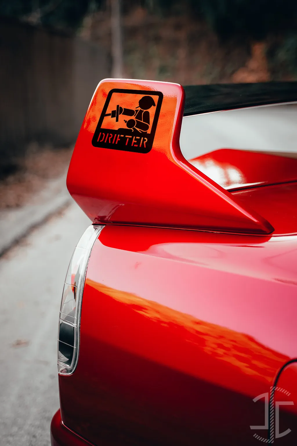Há quem conduza. E depois há quem deslize. Este autocolante em vinil não é para quem anda de carro — é para quem dança com ele. “Drifter” aqui não é só uma palavra, é um título honorífico, reservado à elite dos que sabem que o travão de mão não é só para estacionar, é para fazer poesia em alcatrão.