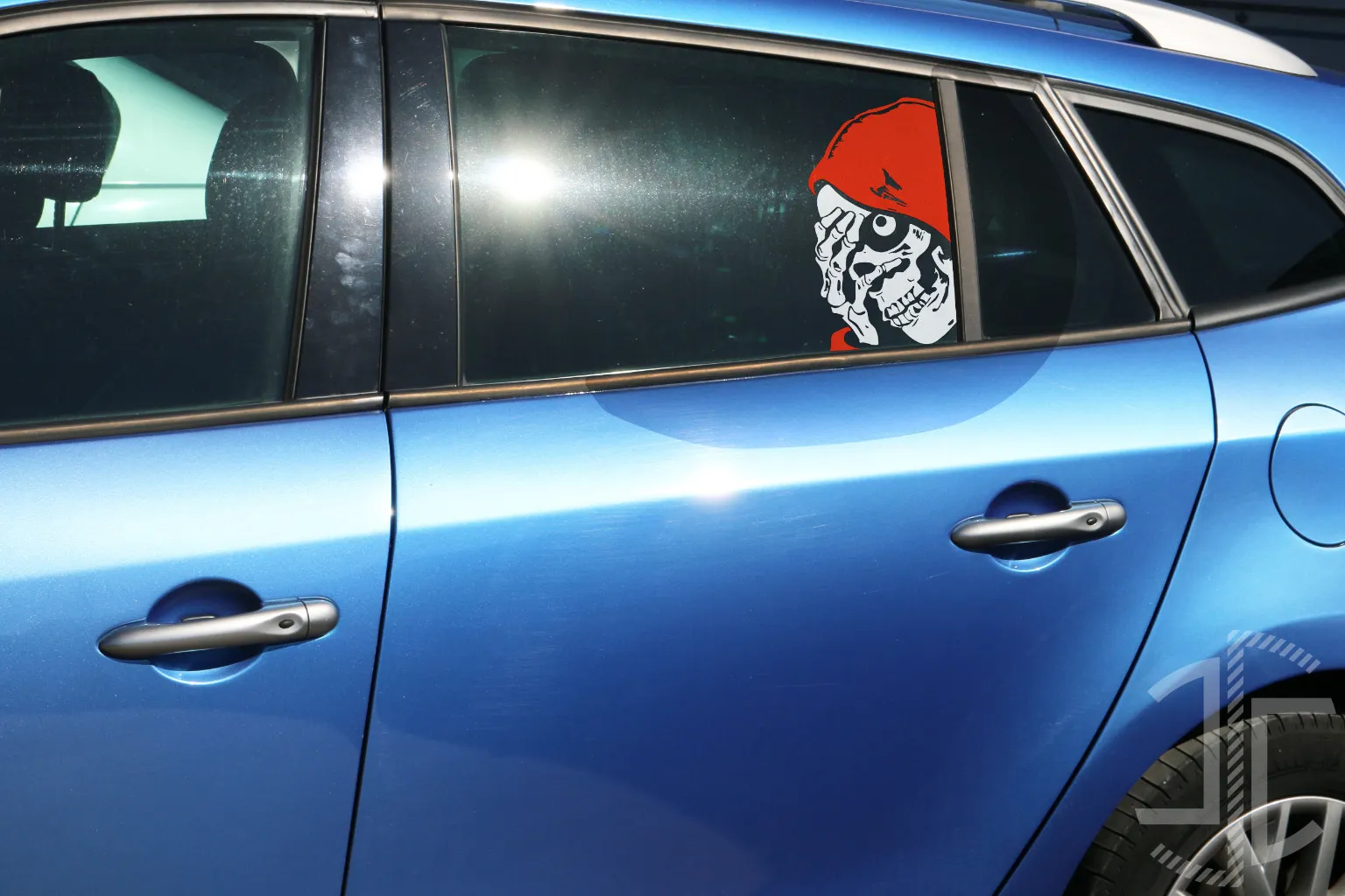 O capuz vermelho que adorna a caveira é a cereja no topo do bolo do absurdo. E para aqueles que, com o seu inegável bom gosto, preferem uma estética mais sombria e condizente com o seu guarda-roupa de segunda-feira, há sempre a opção de trocar o vermelho pelo preto. Porque, como sabemos, o desespero é universal, mas a paleta de cores para o exprimir é uma escolha pessoal. Este autocolante é para o condutor que compreende a futilidade da existência, que se ri na cara do tédio e que sabe que, por vezes, a única resposta sensata para a vida é um profundo e resignado "face palm". É a prova de que, mesmo depois de tudo, o humor persiste..