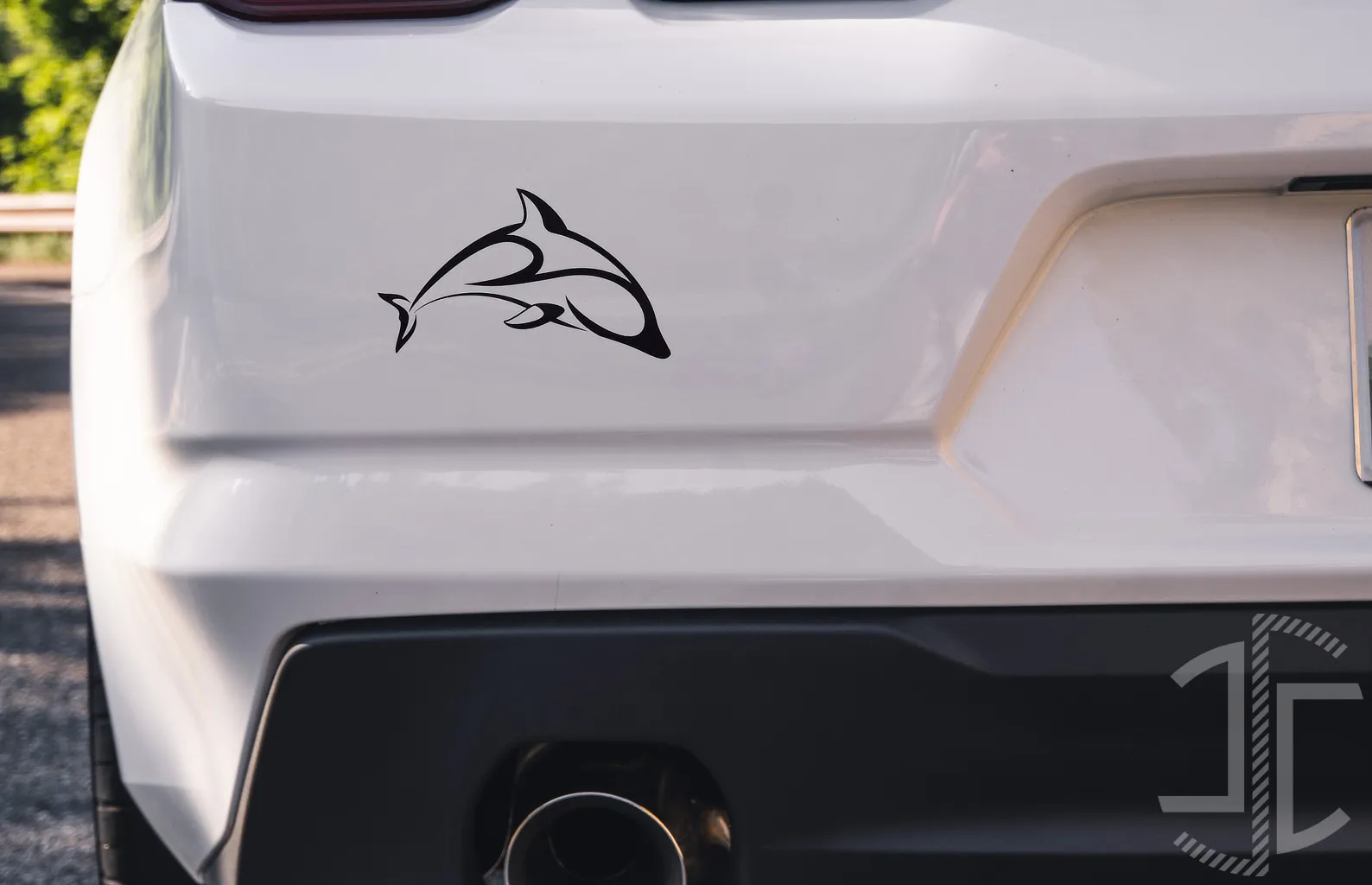 Este decalque autocolante em vinil une a elegância do mundo marinho com a força gráfica dos traços tribais. O design apresenta um golfinho estilizado com linhas fluidas e curvas dinâmicas, evocando movimento, liberdade e inteligência — características que fazem do golfinho um símbolo universal de harmonia e conexão com a natureza.
