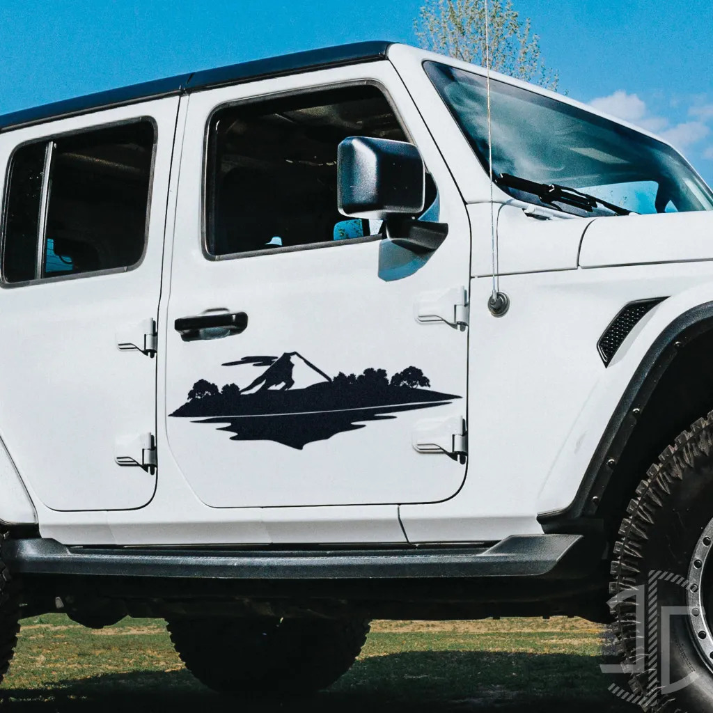 A silhueta completa assume uma forma alongada e coesa, quase como um brasão ou um ícone heráldico moderno. Aplicada a um veículo de todo o terreno, como se ilustra, transcende a sua função decorativa para se tornar uma declaração de princípios. Não representa um destino específico, mas sim um arquétipo: o da natureza remota como santuário, um lugar de desafio e recolhimento. A “ilha deserta” aqui não é de areia e mar, mas de rocha, floresta e água doce — um reduto de tranquilidade acessível apenas àqueles que se atrevem a procurá-lo.