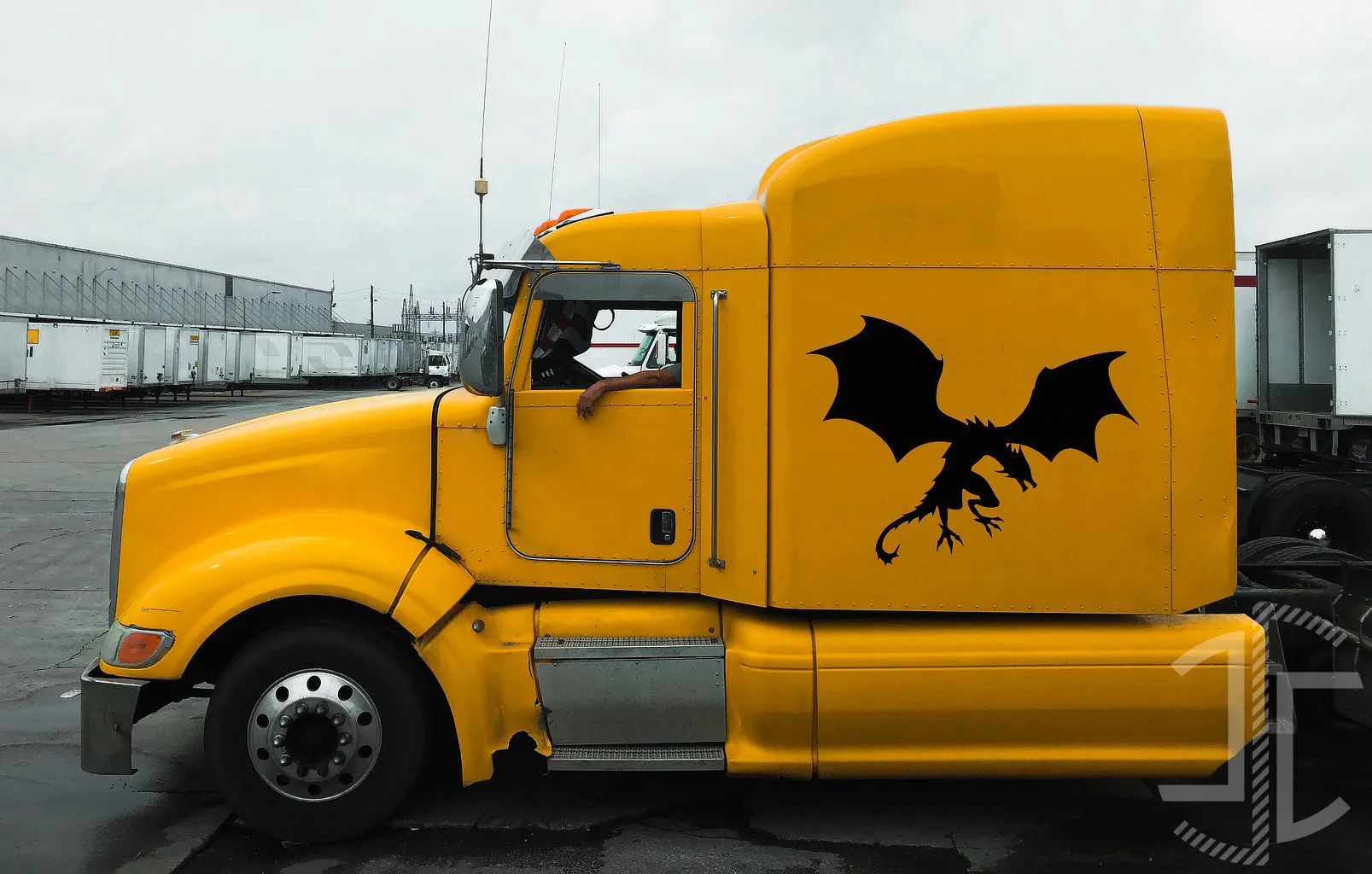 Este dragão não é daqueles que se escondem em cavernas ou guardam princesas — este prefere a lateral de um camião amarelo, onde se exibe com a arrogância de quem sabe que é o alfa da mitologia. A quarta versão do design “O Dragão” apresenta uma criatura alada, de garras afiadas e cauda espinhosa, com uma postura que mistura ameaça e elegância. E sim, estamos perante um dragão de estilo europeu.