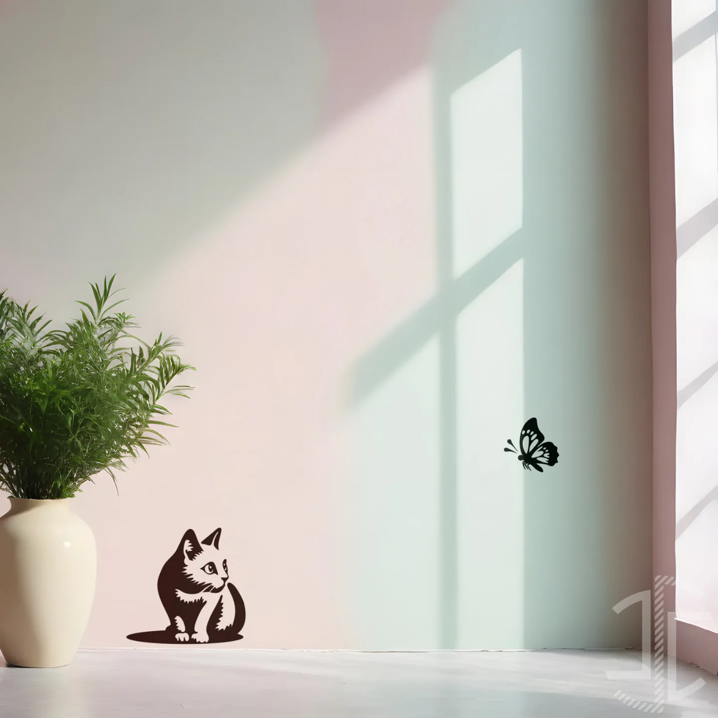 O conjunto autocolante em vinil “O gato e a borboleta” é a definição perfeita de sofisticação subtil na decoração de interiores. Aqui não há exuberâncias desnecessárias: apenas linhas pretas e formas puras que, mesmo em silêncio, contam uma história universal de curiosidade e harmonia. O gato, alerta mas sereno, observa a borboleta com aquele olhar entre a caça e o fascínio — é o suspense da natureza numa parede limpa, trazido para o quotidiano. O cenário monocromático transforma o espaço sem o invadir, permitindo que este vinil se adapte com graça tanto a quartos infantis como a zonas mais sofisticadas, hall de entrada ou até mesmo um espaço criativo onde se quer inspiração e leveza.