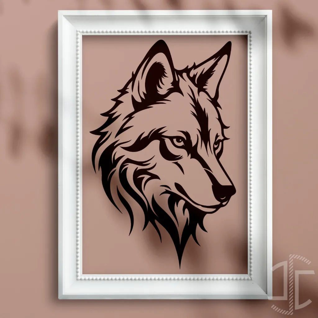 É importante clarificar que, nas imagens de apresentação, o decalque surge dentro de uma moldura branca. Trata-se apenas de uma sugestão de aplicação, um convite a brincar com os limites entre a arte de parede e o enquadramento clássico. A moldura não é necessária nem está incluída; a obra é o lobo, livre de qualquer confinamento...