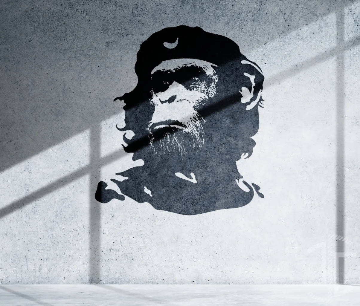 "O Macaco General" é um daqueles retratos que, à primeira vista, arranca um sorriso cúmplice — e, logo a seguir, deixa um travo amargo. A fusão entre o rosto de um chimpanzé e uma das iconografias revolucionárias mais reproduzida do século XX não é inocente: é um espelho deformado onde se reflecte a facilidade com que símbolos de luta se transformam...