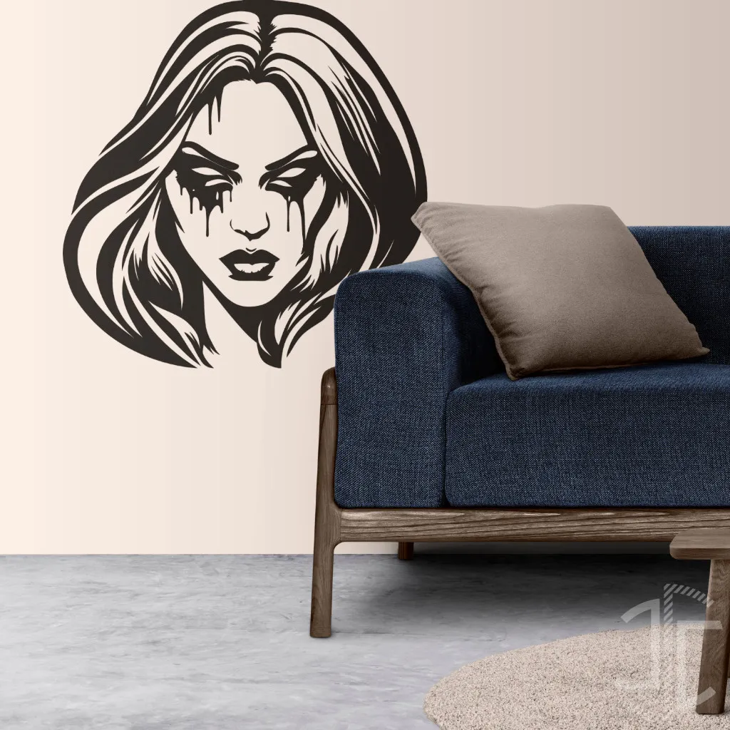 Este decalque não é para almas tímidas, nem para quem prefere a simplicidade nórdica. É para o apreciador do gótico-chique, para o nostálgico dos dias em que se ouvia My Chemical Romance no volume máximo e o sofrimento existencial era o acessório mais "fashion". É a peça ideal para adornar a parede de alguém que secretamente ainda adora um bom drama, ou que simplesmente não consegue encontrar um autocolante do Robert Smith dos The Cure em tamanho mural. É uma afirmação: "sim, a minha alma é um poço de melancolia profunda, mas com estilo." Uma homenagem àquelas noites em que a única companhia é a chuva na janela e a única alegria é o rímel a escorrer de forma artística. Ou, quem sabe, e agora num tom mais sério... é apenas uma forma de lembrar que a vida, tal como o "eyeliner", nem sempre corre como planeado....