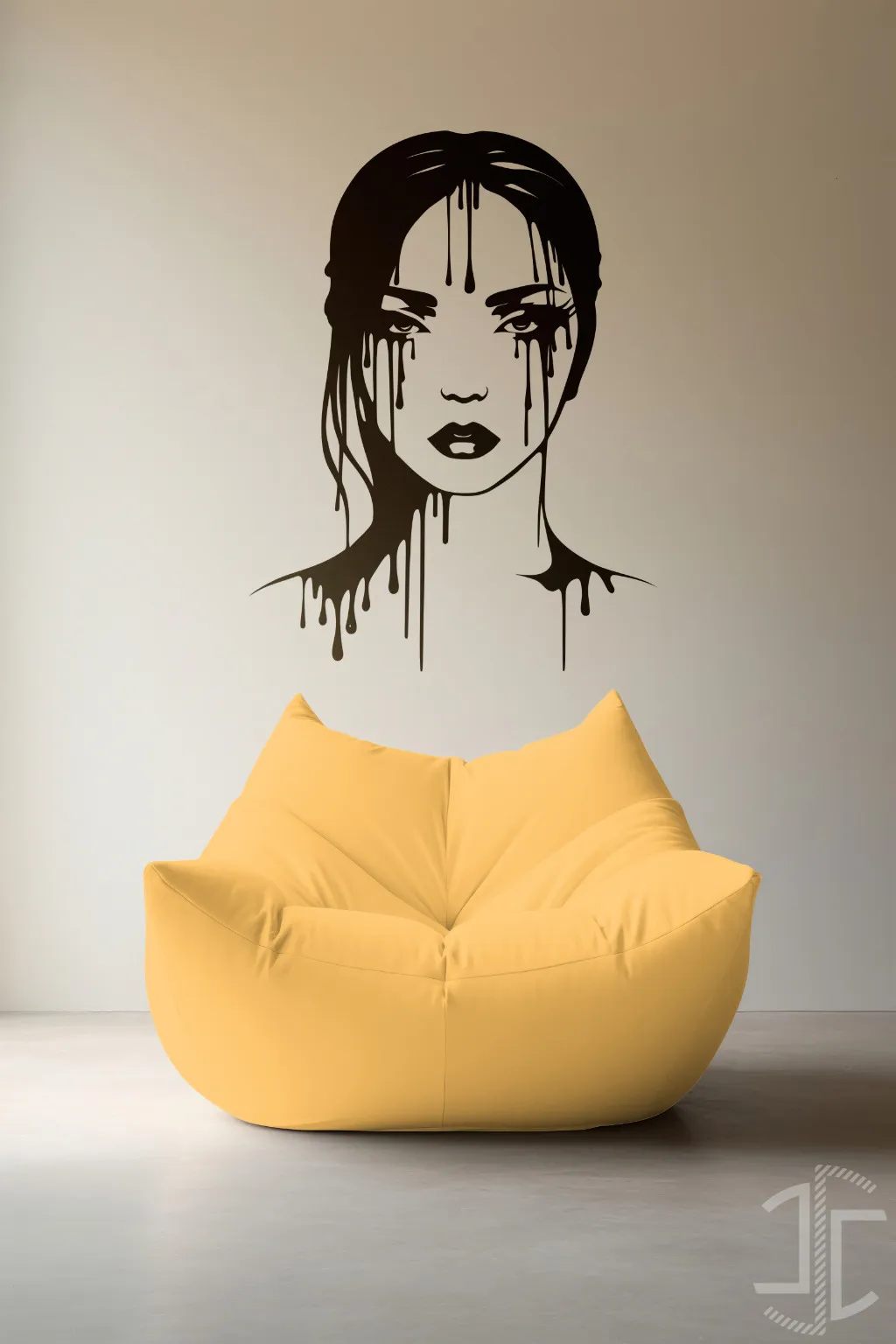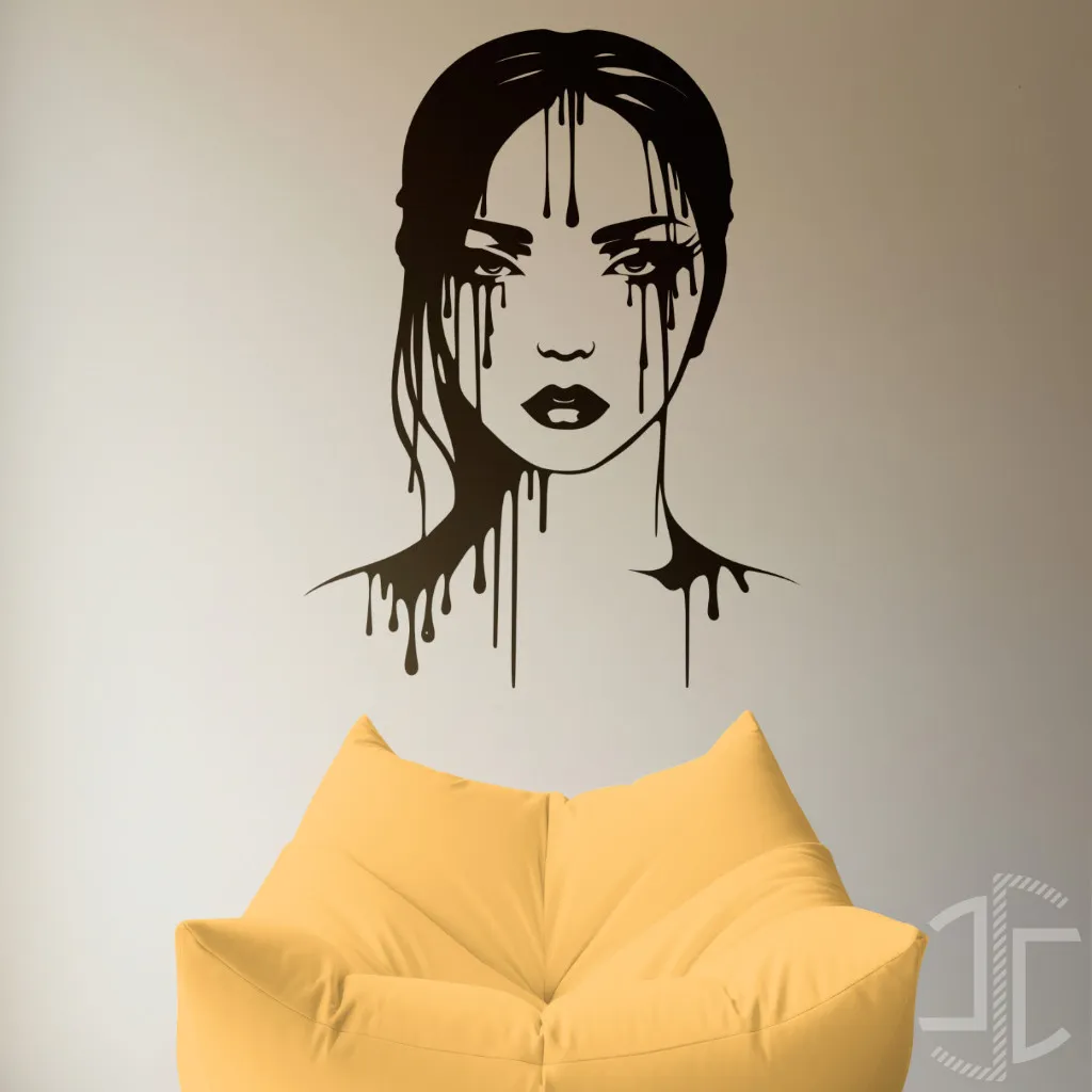 A força deste design reside na sua capacidade de comunicar complexidade emocional através da simplicidade gráfica. A paleta monocromática intensifica o drama, focando a atenção na expressão e nos escorridos, que se tornam o ponto focal da narrativa visual. É um decalque que pode ser interpretado como um espelho da alma, um convite a reconhecer a beleza na imperfeição e a força na exposição da fraqueza. É algo que exige contemplação, um recordar de que as emoções mais viscerais podem ser representadas com uma elegância crua. Não é um elemento decorativo passivo, mas uma afirmação artística, ideal para um espaço que valoriza a arte que desafia e provoca o pensamento, que abraça a melancolia com dignidade e que encontra poesia na mais pura das expressões humanas.