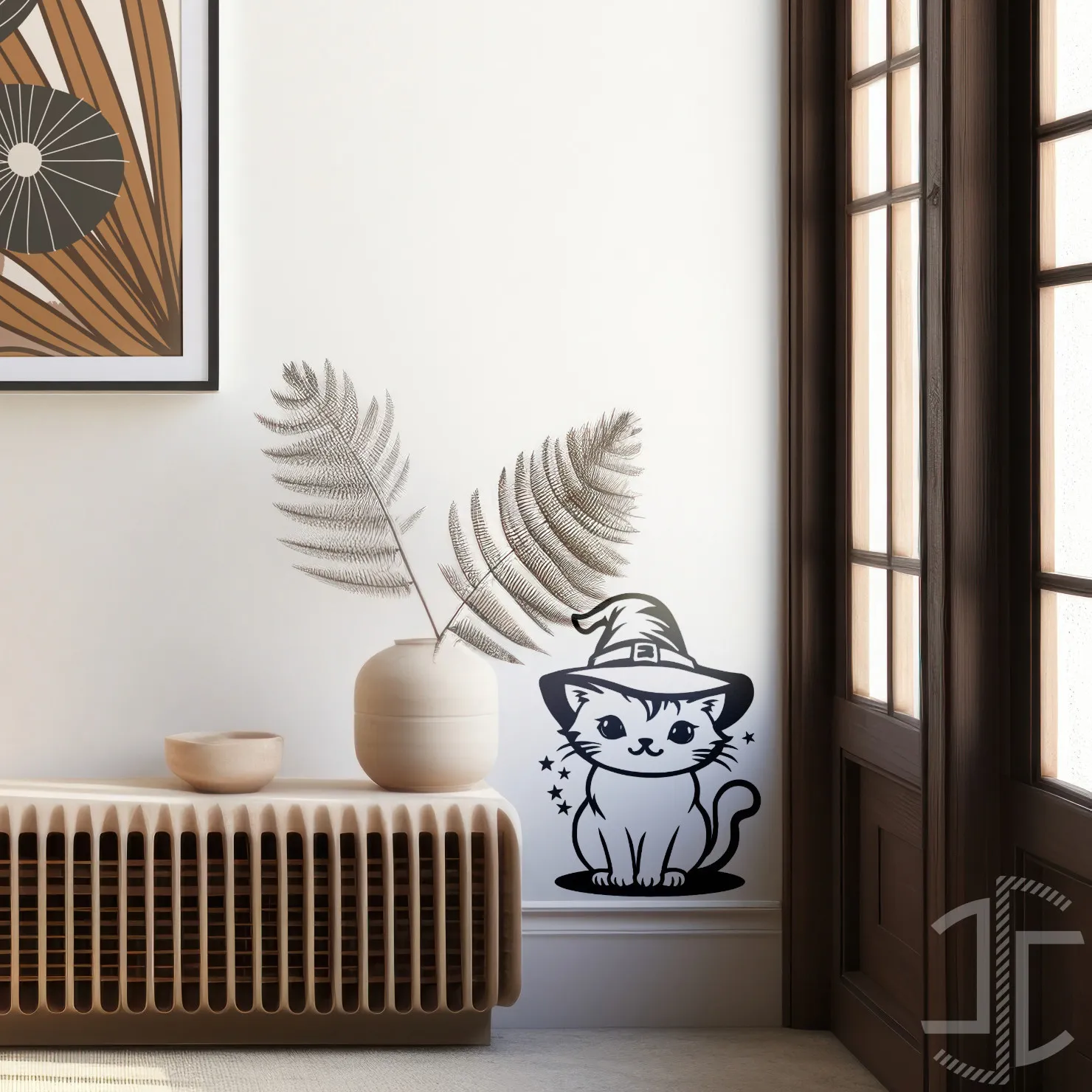 Este decalque é a prova viva de que a nostalgia pela fantasia e por uma certa inocência ainda reside nos recantos das nossas casas. É o objeto ideal para quem tem saudades dos desenhos animados de sábado de manhã, ou para quem secretamente acredita que o seu próprio gato, aquele que dorme doze horas por dia e só acorda para pedir comida, tem uma vida secreta de aventuras místicas após o crepúsculo. Não é um produto que promete a revolução estética, mas antes uma quietude charmosa, um piscar de olho cúmplice a quem o observa. Serve para nos lembrar que, por vezes, a felicidade está nas coisas mais simples, nas formas mais puras, e na capacidade de dar um chapéu de feiticeiro a um gato sem que este se importe. Uma peça de sinalética, sim, mas daquela que aponta para um universo paralelo, um universo onde os gatos mandam e os humanos apenas observam, divertidos e um pouco invejosos...