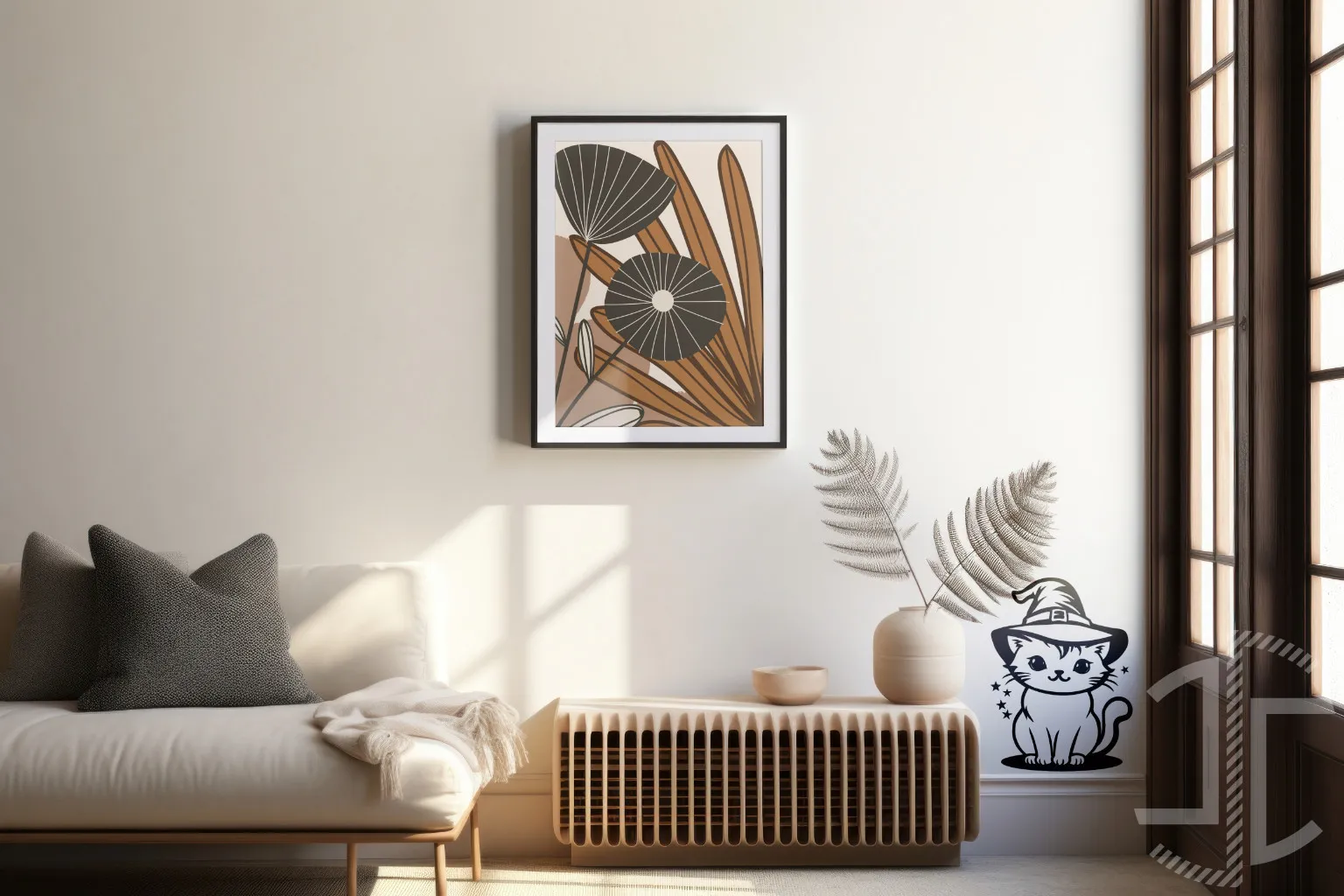 Ah, eis que surge, na alvura imaculada da parede de uma qualquer sala portuguesa, qual miragem de um tempo menos complicado, um Pequeno Feiticeiro. E de que se trata? Nada mais, nada menos, que um gato. Um gato em silhueta, é certo, mas um gato, nonetheless. Não um gato qualquer, bem entendido, mas um exemplar felino que, pela ousadia do seu toucado, se eleva ao estatuto de arcano menor. Ostenta na cabeça um chapéu bicudo, daqueles que as bruxas de antanho usavam, ou talvez os aprendizes de feiticeiro, antes de dominarem os feitiços mais complexos e decidirem que a moda gótica não era assim tão má. A fivela, aliás, não deixa margem para dúvidas: este não é um chapéu de brincar ao faz de conta, este é um chapéu com intenções.