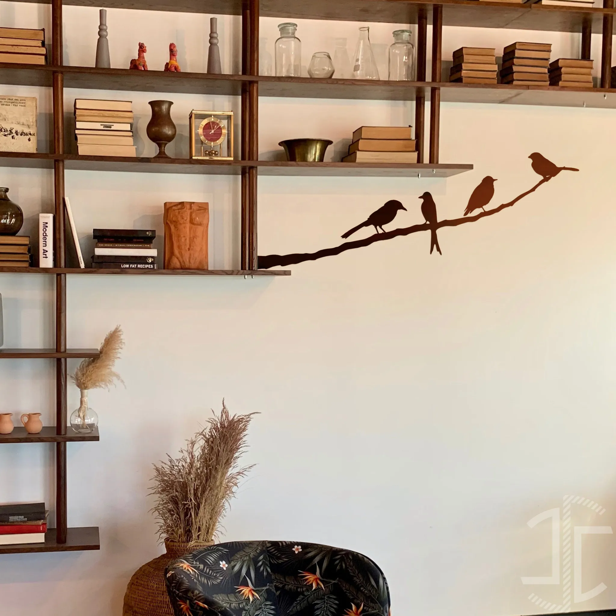 Com uma simplicidade desarmante, este decalque decorativo em vinil autocolante condensa a beleza da natureza numa única linha. A imagem, uma silhueta pura e elegante, apresenta quatro pássaros pousados num ramo singular. Ao contrário de uma ramagem densa e complexa, este design opta por um galho quase linear, que atravessa o espaço como uma pincelada, conferindo à composição um sentido de ordem, ritmo e clareza.