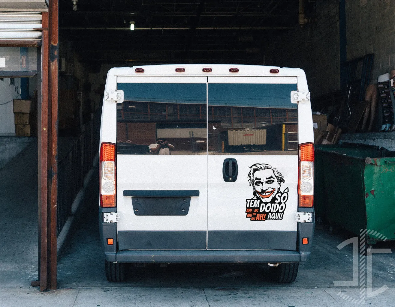 Este é um decalque que não se limita a ser um adereço: é um diagnóstico visual, quase um espelho distorcido, do caos humano em versão concentrada. A figura central — um homem anónimo, híbrido improvável entre mimo desalinhado e palhaço em fim de turno — carrega no rosto a exaustão de quem já viu demasiado e a lucidez de quem sabe que a sanidade é um intervalo breve.