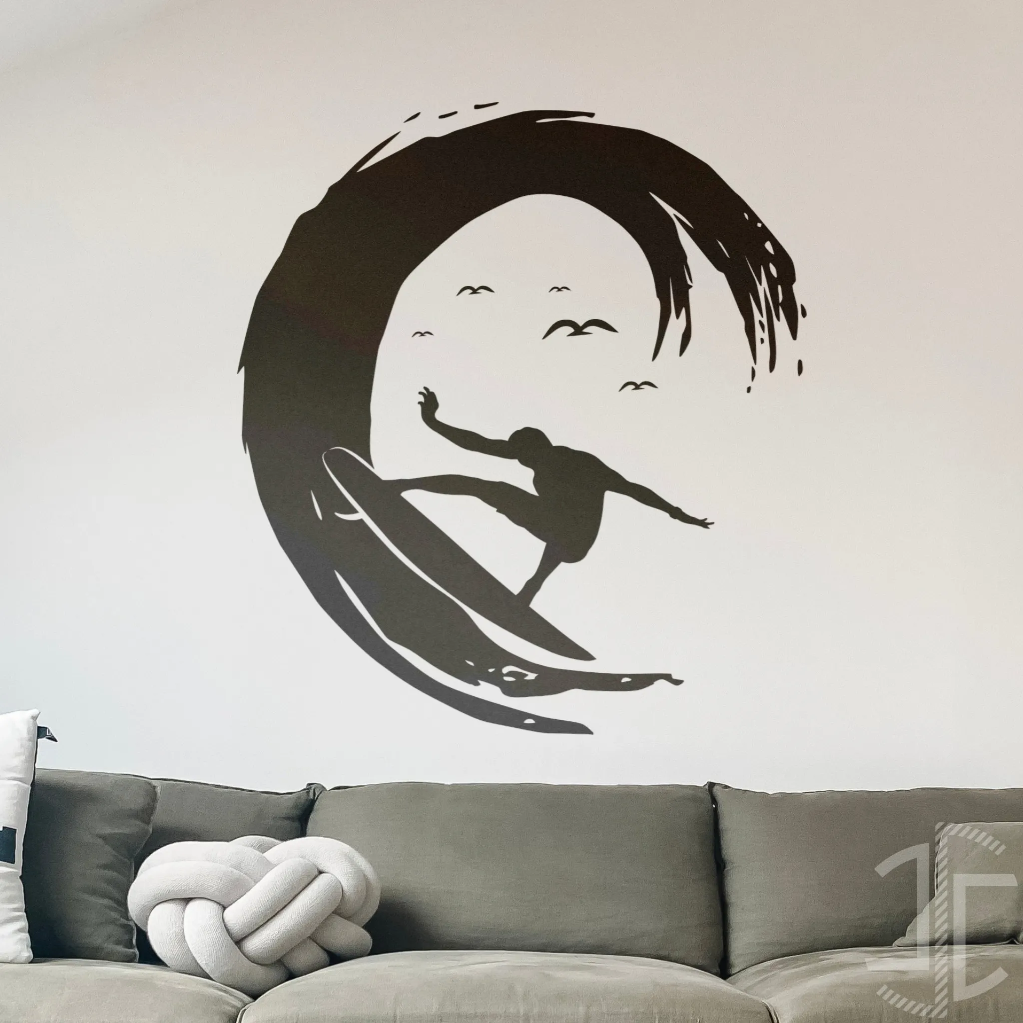 Este design transforma uma parede numa janela para o espírito do surf. É um convite para trazer a energia da costa para o interior, para infundir um espaço com a filosofia de quem vive ao ritmo das ondas. Ideal para uma sala de estar, um quarto ou qualquer lugar que necessite de um ponto focal que inspire dinamismo e serenidade, este autocolante serve como um lembrete constante. Um lembrete de que a vida, tal como o mar, apresenta-nos ondas de desafios e oportunidades. Não podemos controlar a sua força ou o seu tamanho, mas podemos escolher como as vamos surfar: com medo e hesitação, ou com equilíbrio, foco e uma aceitação graciosa do fluxo.